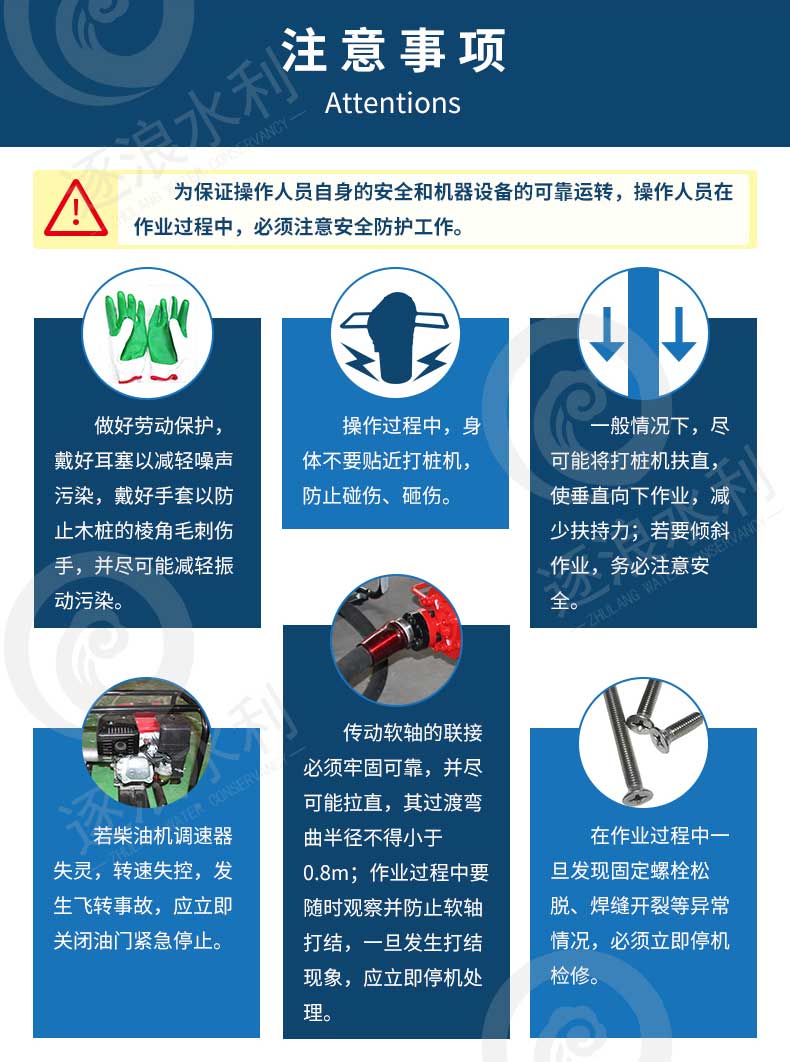 4、在操作過程中,有可能因振動引起木樁松動,應---轉動夾樁器的絲桿以壓緊木樁。